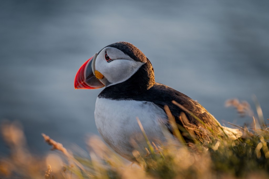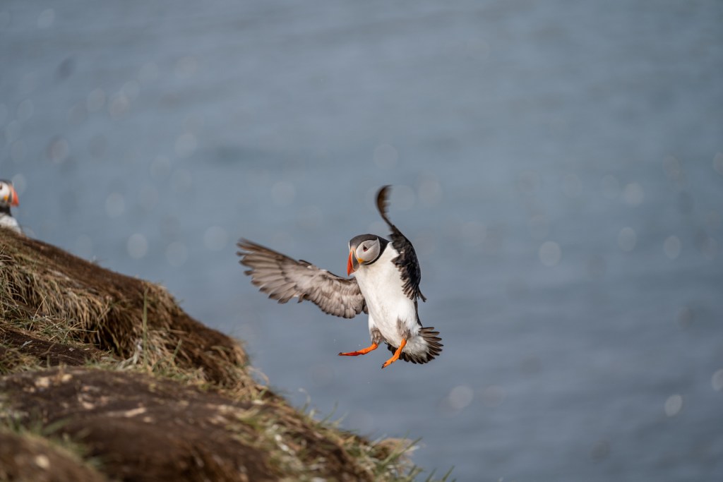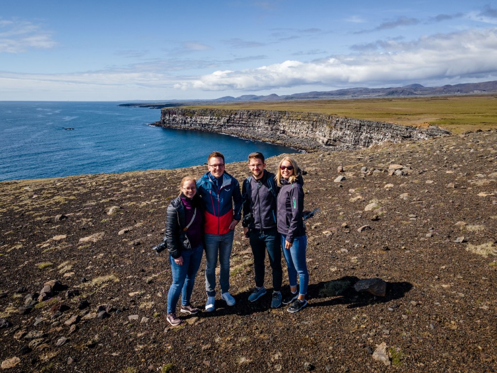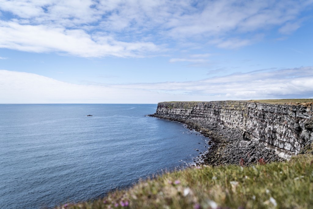 Folgt man dem Weg zum Schiff nun weiter gen Westen, kommt man zum Látrabjarg, dem westlichsten Punkt Islands und einem der besten Puffen-Felsen der gesamten Insel. Da wir die possierlichen Tierchen im Jahr zuvor nur es der Ferne sehen konnten, wollten wir in diesem Jahr etwas näher ran. Der Látrabjarg ist dafür tatsächlich ein sehr guter und auch noch fotogener Platz. Zwar muss man aufpassen, vom starken Wind dort nicht umgepustet zu werden, jedoch ist der Blick auf die steilen Küstenfelsen und das stahlblaue Meer mehr als beeindruckend. Da wir gegen Abend dort waren, belohnte uns dann auch noch die Sonne mit einem schönen Untergang und bestem Licht. Ein wirklich perfekter Ort, den ich mir bereits im Vorfeld ausgesucht hatte, um Cora einen Heiratsantrag zu machen. Zwischen überwältigender Landschaft, hunderten von Puffins, die zum Greifen nah an den Felsen saßen oder zwischen unseren Füßen watschelten, fasste ich mir dann ein Herz und stellte die Fragen der Fragen. Glücklicherweise bekam ich ein “ja” als Antwort. Somit ist dies nun ein unvergessener Ort auf unserer Lieblingsinsel Island.