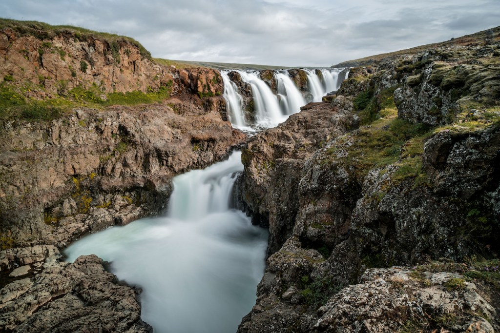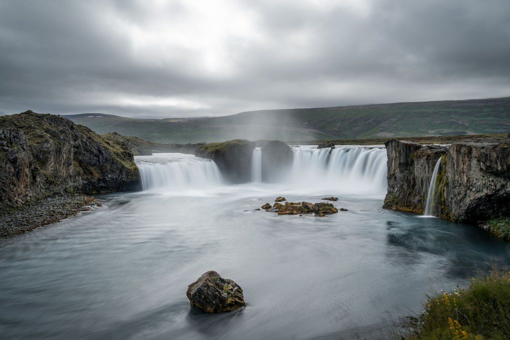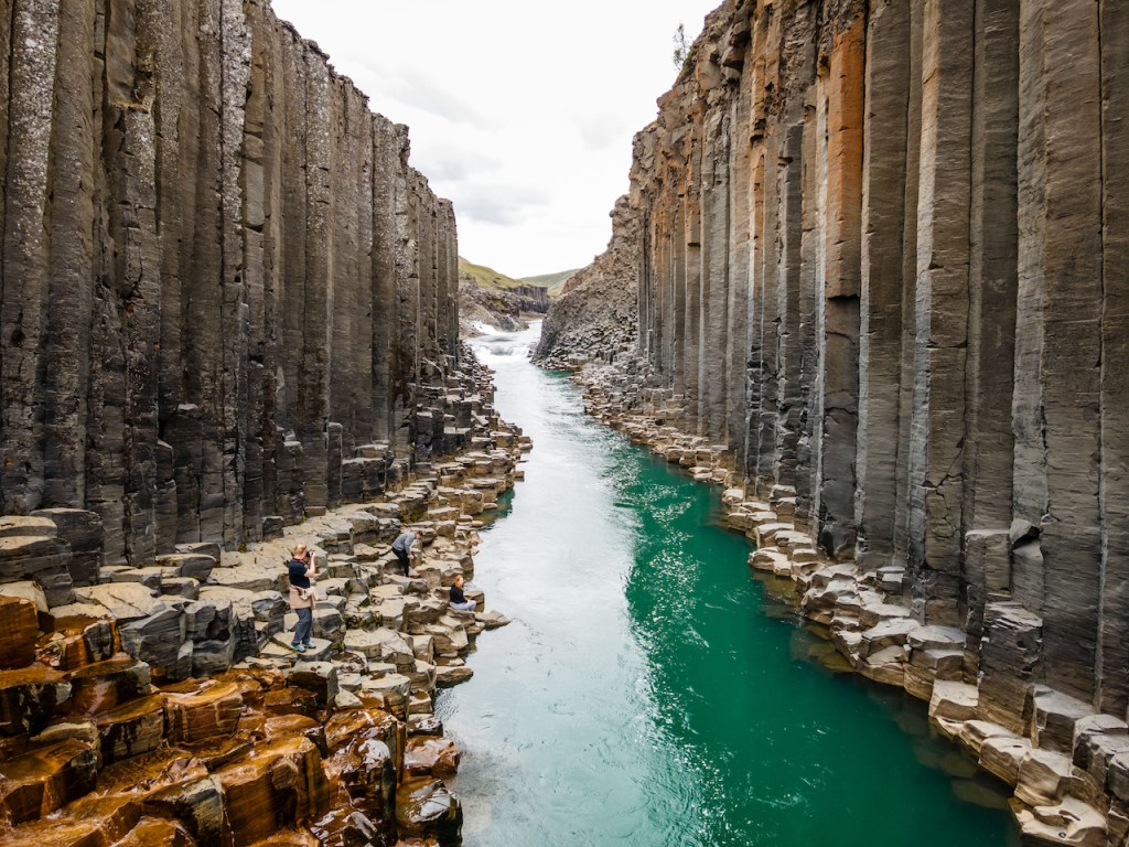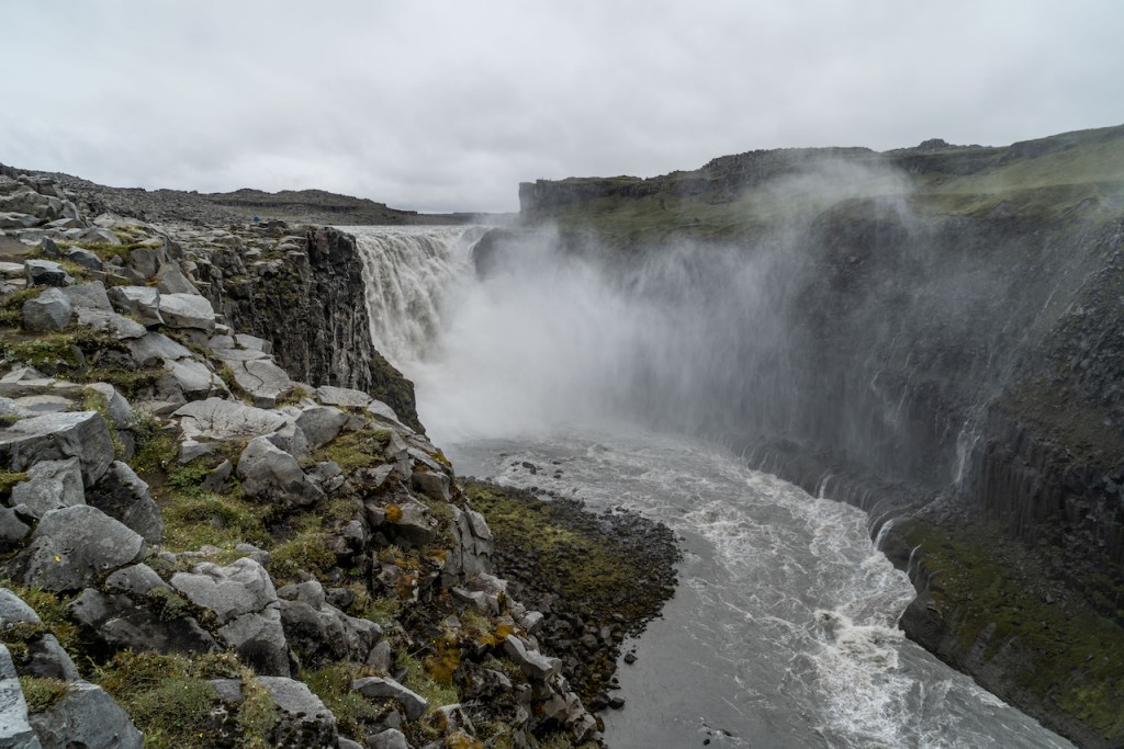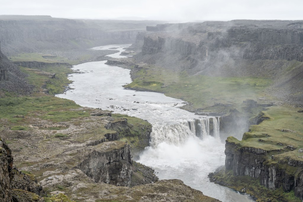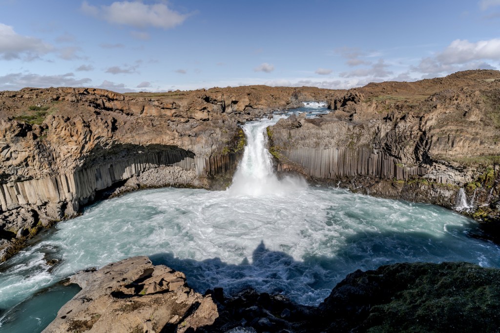 In den nächsten zwei Tagen verließen wir die Westfjorde dann wieder in Richtung Ringstraße. Auf dieser sollte es anschließend durch den Norden Islands gehen. Die ersten Sehenswürdigkeiten waren hier der im Wasser stehende Felsen Hvítserkur und der Kolugljúfur Canyon, bevor es weiter nach Blönduós ging, wo wir wieder einen Übernachtungsstop hatten. Die nächste Etappe war dann mal nicht ganz so weit, da wir nur bis Akureyri fuhren. Am Nachmittag erkundeten wir vorhin aus die beiden sehr imposanten Wasserfälle Goðafoss und Aldeyjarfoss. Während der Goðafoss direkt an der Ringstraße gelegen und somit leicht zu erreichen ist, muss man zum Aldeyjarfoss ein ganzes Stück ins Landesinnere fahren. Die Straßen sind zwar ebenfalls nicht asphaltiert, aber im Vergleich zu den Westfjorden in besserem Zustand.