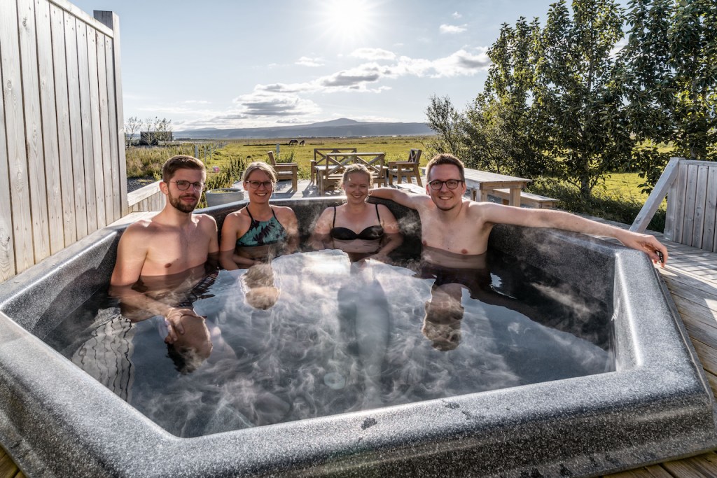 Da wir ursprünglich von einer kurzen Quarantänezeit ausgingen, übernachteten wir die ersten beiden Nächte in der Nähe von Selfoss, um dort unser Testergebnis abzuwarten, das wir dann gar nicht brauchten. Wir übernachteten in einem schönen kleinen Holzhaus auf einer Pferdefarm, deren Aussehen schon etwas von den typisch amerikanischen Farmen hatte. Cora und ich kannten Selfoss, Die Reykjanes-Halbinsel und den Golden Circle bereits vom Vorjahr. Wir nutzten dann aber den ersten Tag, um unseren uns begleitenden Freunden hier die wichtigsten Sehenswürdigkeiten zu zeigen. So ging es zunächst die Südküste entlang bis zum Hópsnesviti-Leuchtturm bei Grindavík. Von dort mit Zwischenhalt an der Steilküste, die wir im letzten Jahr aufgrund des nicht geländegängigen Autos nicht besuchen konnten, entlang ging es zur Strandakirkja und wieder zurück zur Unterkunft. Nach dem Abendessen vom zur Unterkunft gehörenden Grill sowie einem Bad im hauseigenen Whirlpool besuchten wir dann den Vulkankrater Kerið, Geysir und den Wasserfall Gullfoss.